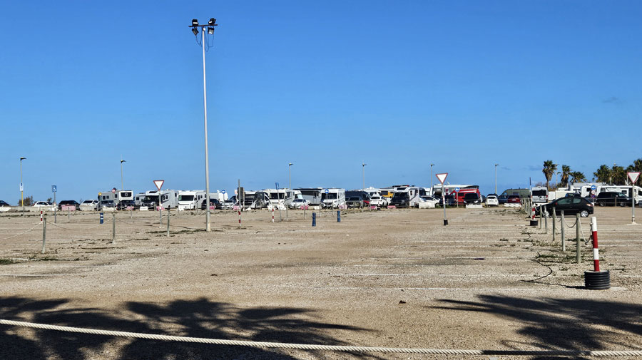 The carpark by the harbour is full of motorhomes.