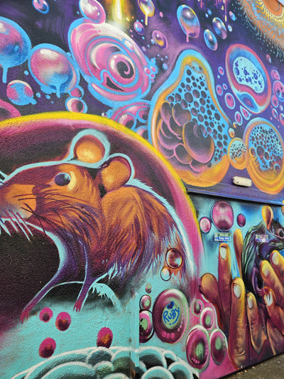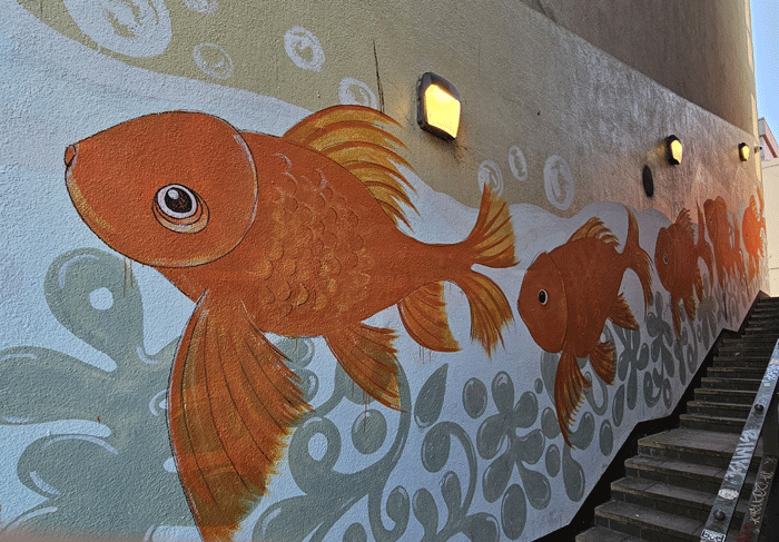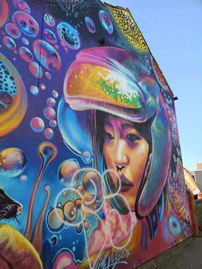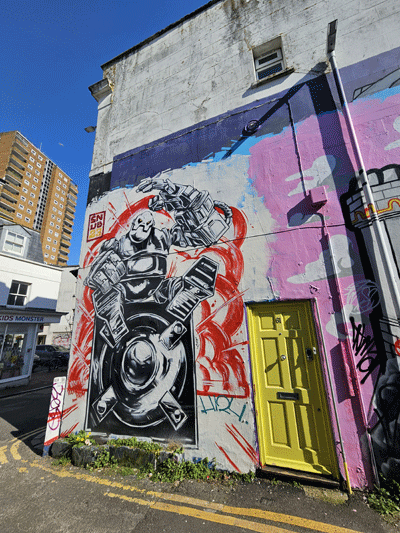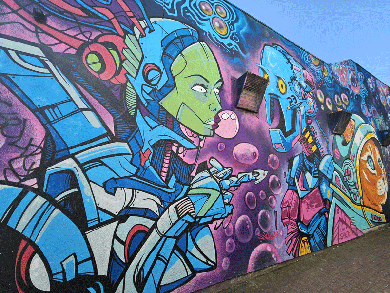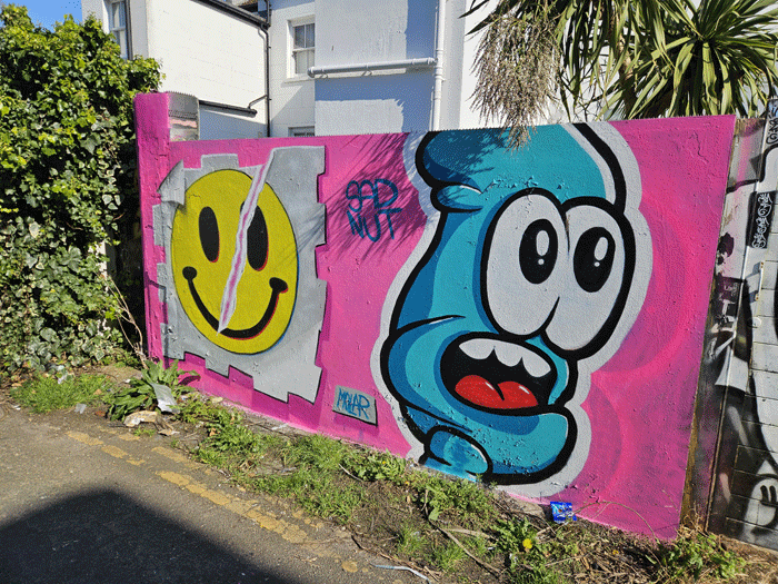 Very interesting and colourful graffiti 👌👌 love the house with the yellow flowers and the house which looks like a jigsaw. Excellent 👏👏