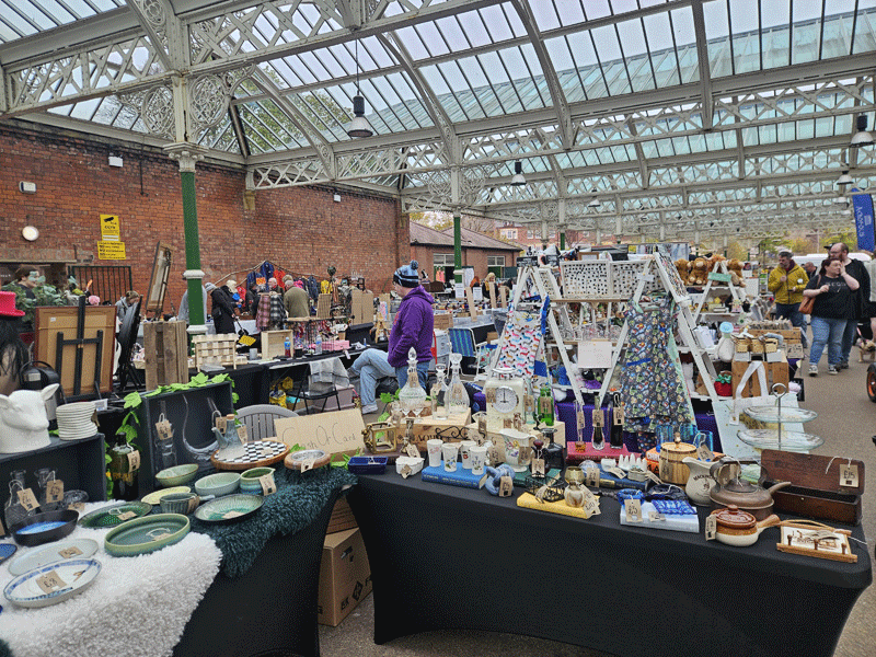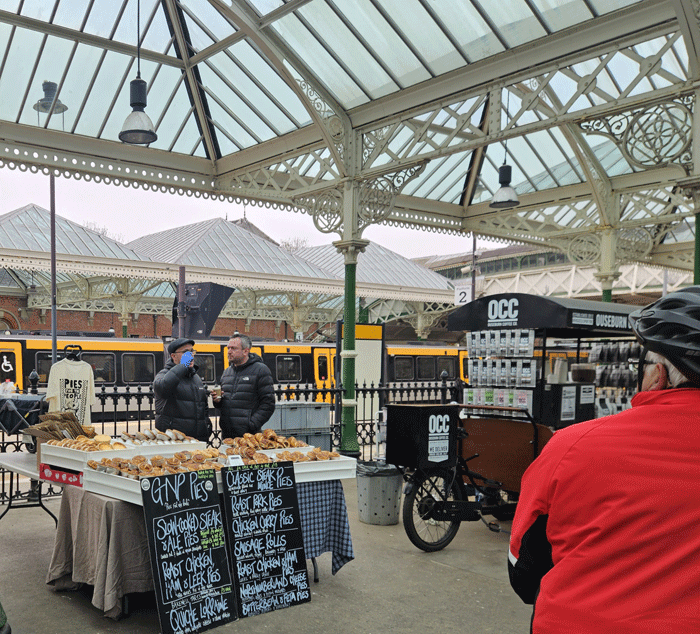 A cycle up to Tynemouth this morning to see the market in the railway station fabulous this station roof has 4600 pains of glass in it and is still in use by the Metro with great stalls.