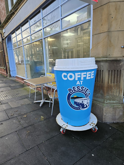 Today a friend picked me up and drove to Silloth for a coffee n cake used to go to Mrs Wilsons but it has gone down hill a bit so I have heard so went to The Golf Hotel found a nice seat and was then told not serving coffee until 1000 so went to another full of locals good food and coffee the coffee takeaway cups are massive.